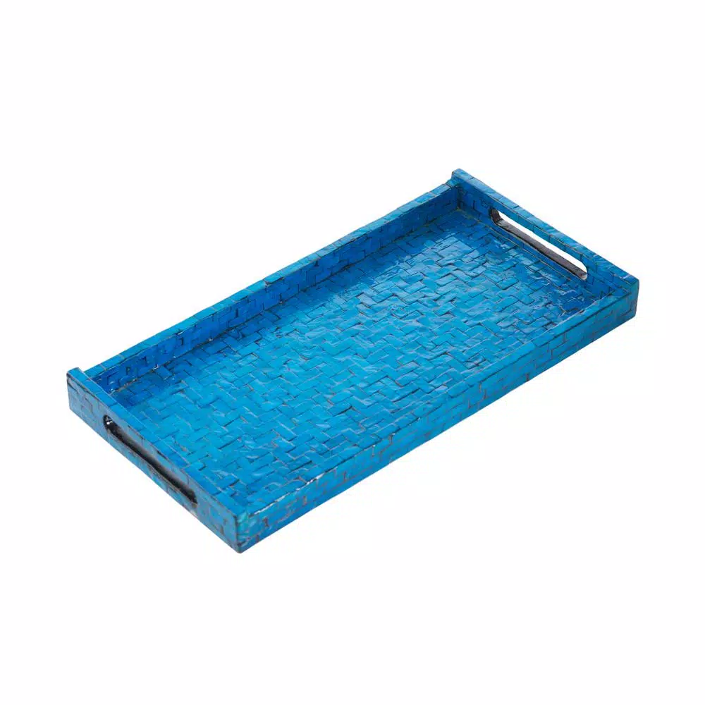A variety of lacquer trays are available in several shapes and colors. A basket weave pattern offers a subtle texture and the fashion colors are right on for today. This tray is wonderful for serving.