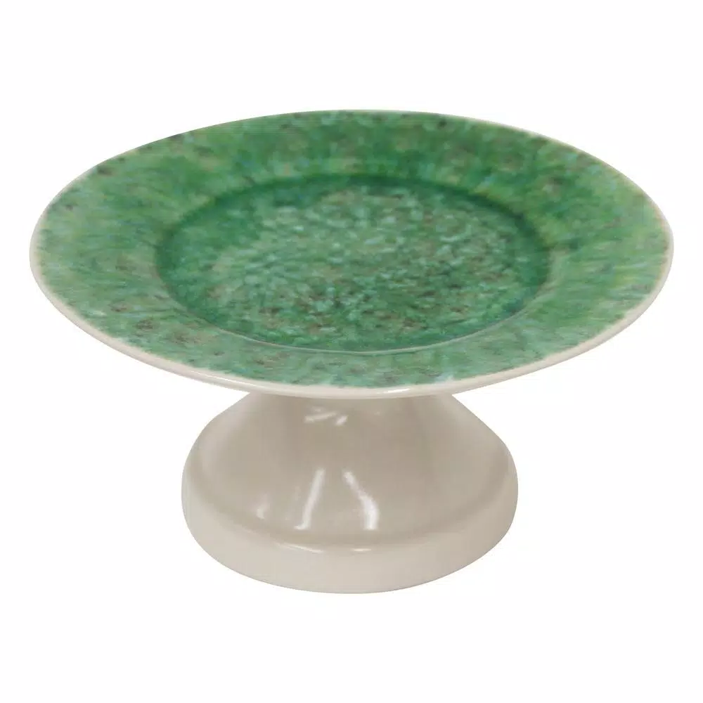 This is a petite-sized footed cake plate. Handmade in Portugal, it is perfect for showcasing a perfectly decorated small cake, cupcake or even a fresh tart. It is dishwasher safe.