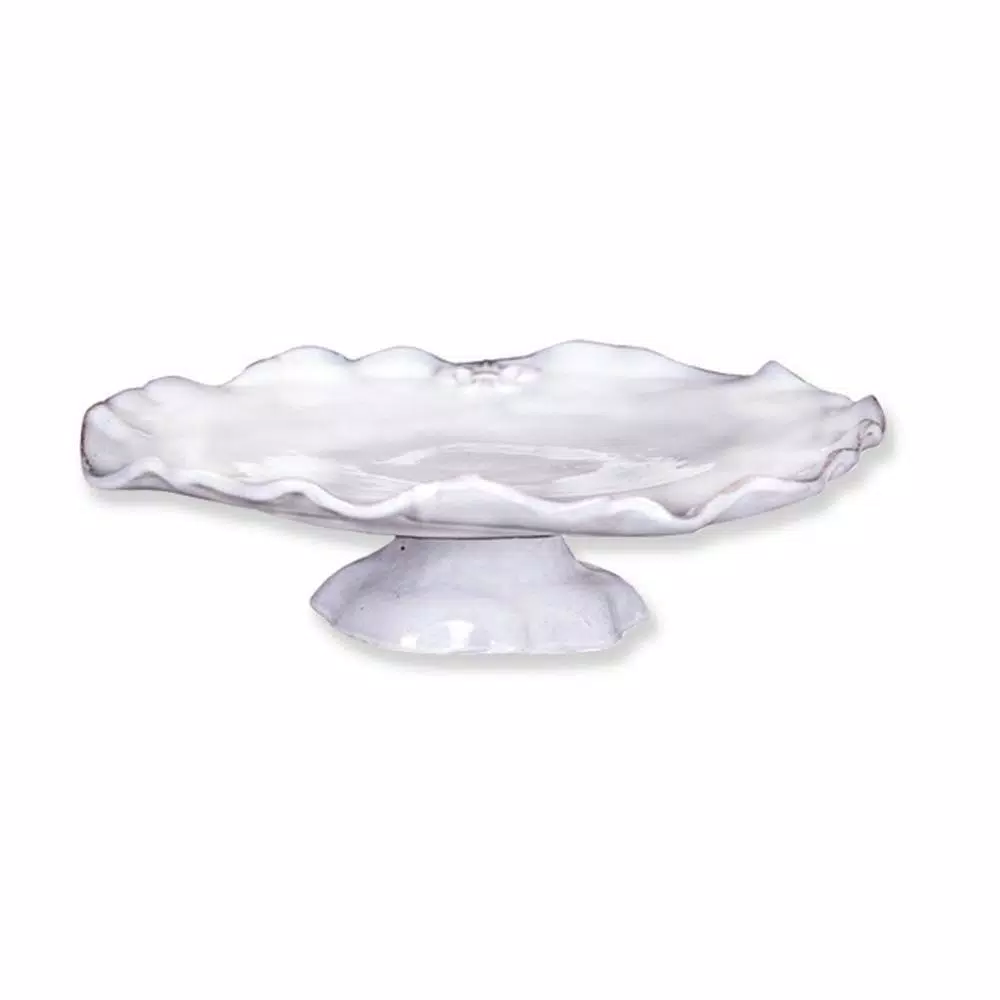 Make a statement with this attractive ruffled edge ceramic cake stand. This piece also looks great piled high with apples and holly as a holiday decoration. It is handcrafted in Italy.