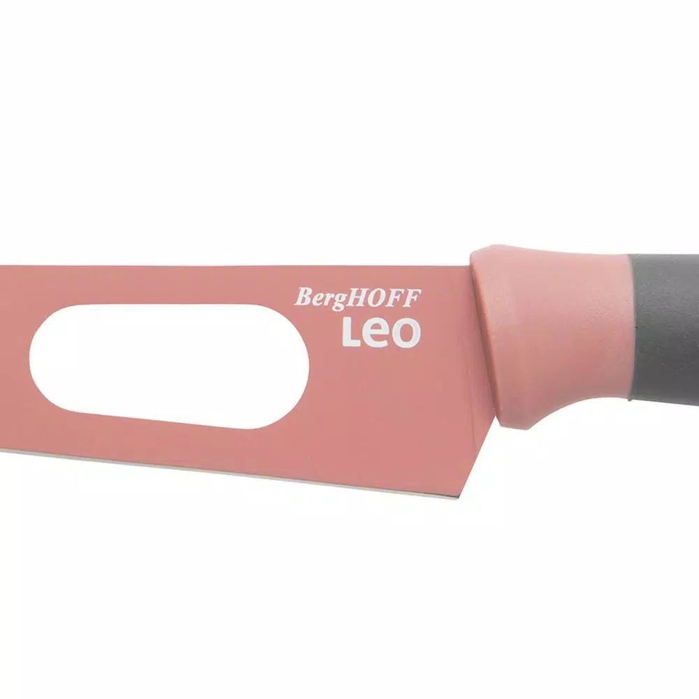 Having a wine and cheese night with the girls? The pink Leo cheese knife is the perfect assistant to help you cut and serve a selection of delicious cheeses. The stainless steel blade cuts through hard cheese but is also easily cuts soft cheese, that wont stick to the blade thanks to the cut out sections. Once youve sliced the cheese, use the convenient fork-tipped spear for serving.