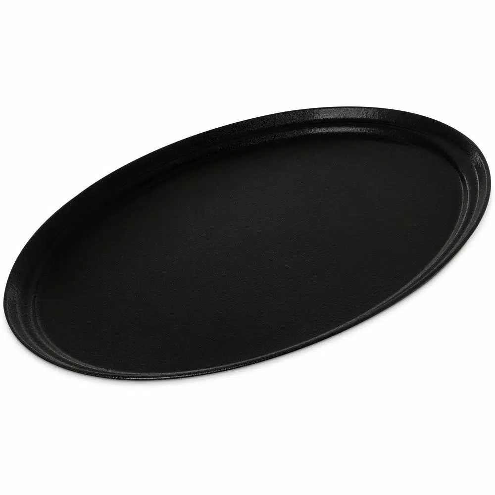 The Griptite 2 Black 24 in. x 19 in. Oval Tray features durable construction with coated edges. Ideal for use in cafes and gatherings, this simple yet sturdy tray, creates a clean, fresh canvas for any food.