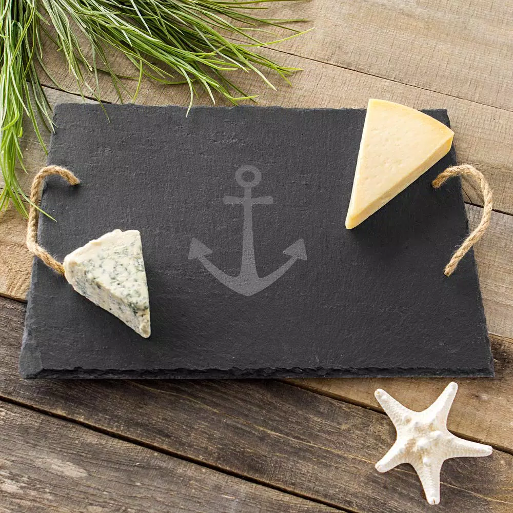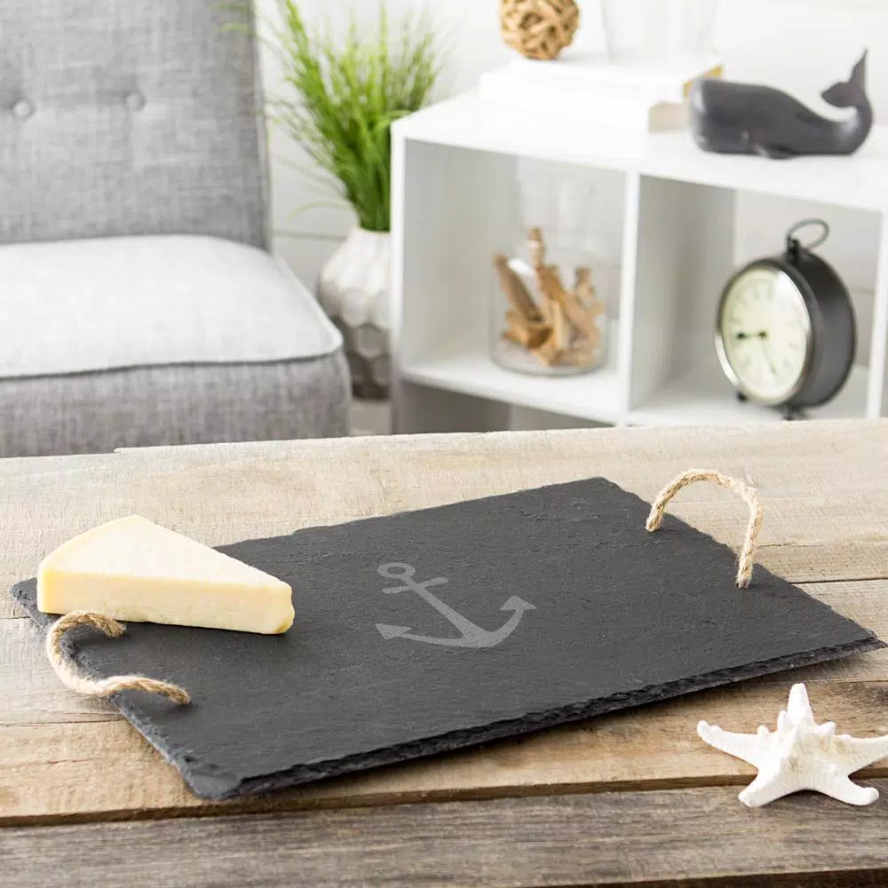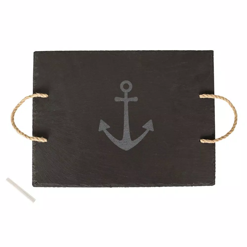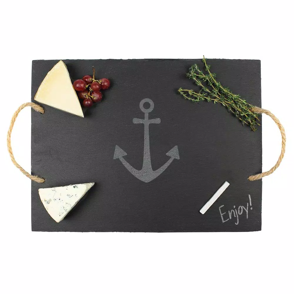 Serve up cheese and appetizers at your next beach party with this Anchor Slate Serving Tray. Comes with a piece of soapstone chalk.