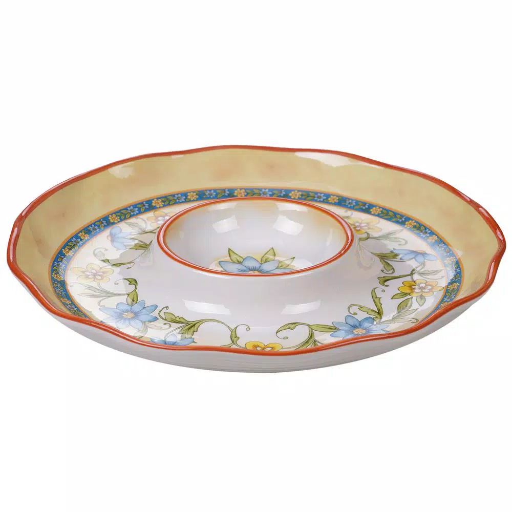Bring the Italian countryside into your home with Certified Internationals Torino ceramic dinnerware and serveware. These pieces are lovingly designed by Karidesign. Decorated in vintage colors of blue and gold, the lovely antiqued mix and match floral designs on unique ruffled shapes are a beautiful addition to any home.