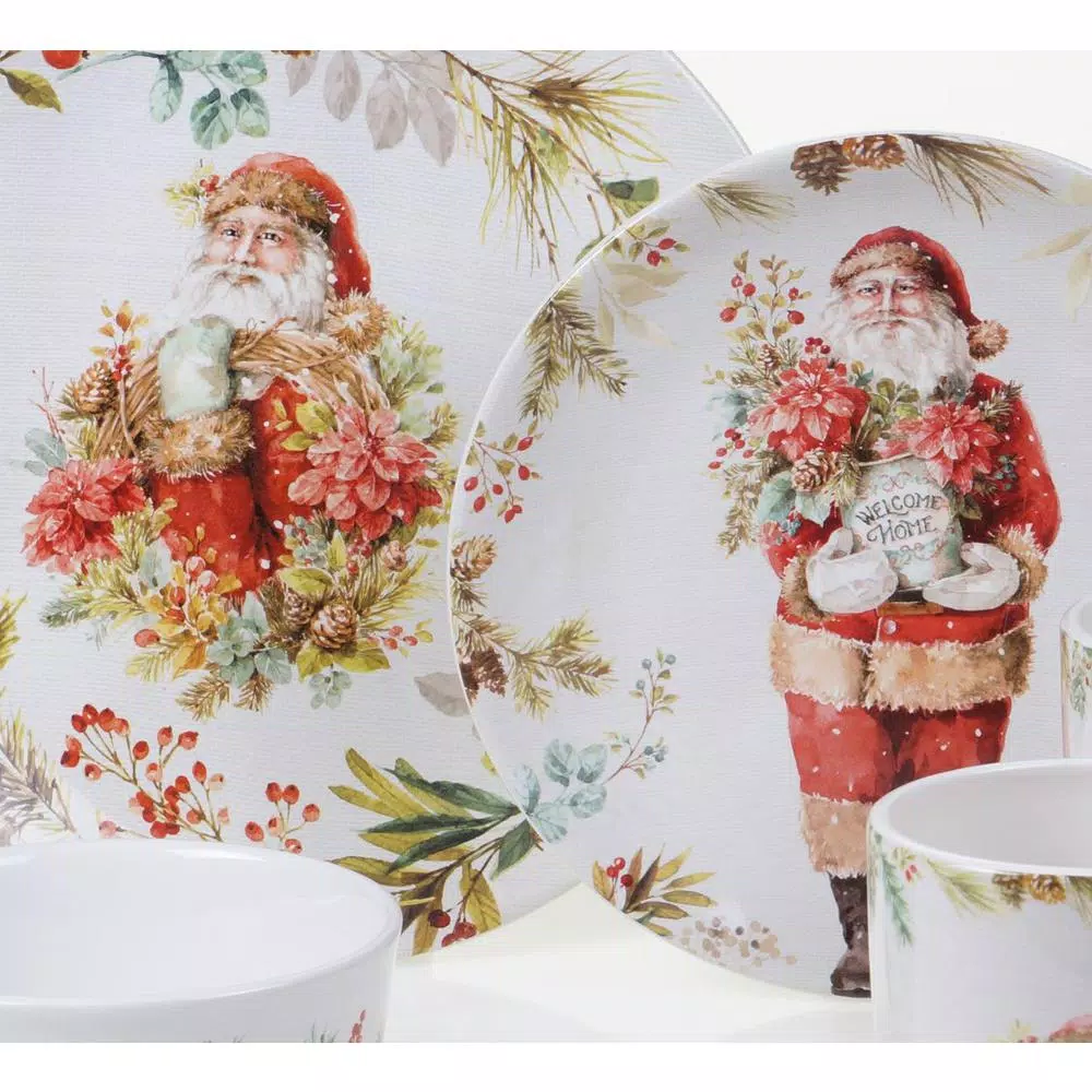 Enjoy the holidays with Certified Internationalβs β A Christmas Storyβ ceramic dinnerware and serveware collection from beautiful watercolor art by Lisa Audit. Featuring scenes of vintage Santas accented by red poinsettias and berries, these pieces can become the centerpiece of your family holiday traditions. The decorative yet functional 3-d Santa cookie jar, S&P set and poinsettia candy plate complete this lovely collection.