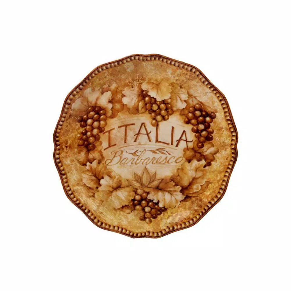 - Charming vintage style round platter with βgilded wineβ pattern creates a stylish table setting, coordinating with other kitchen accessories