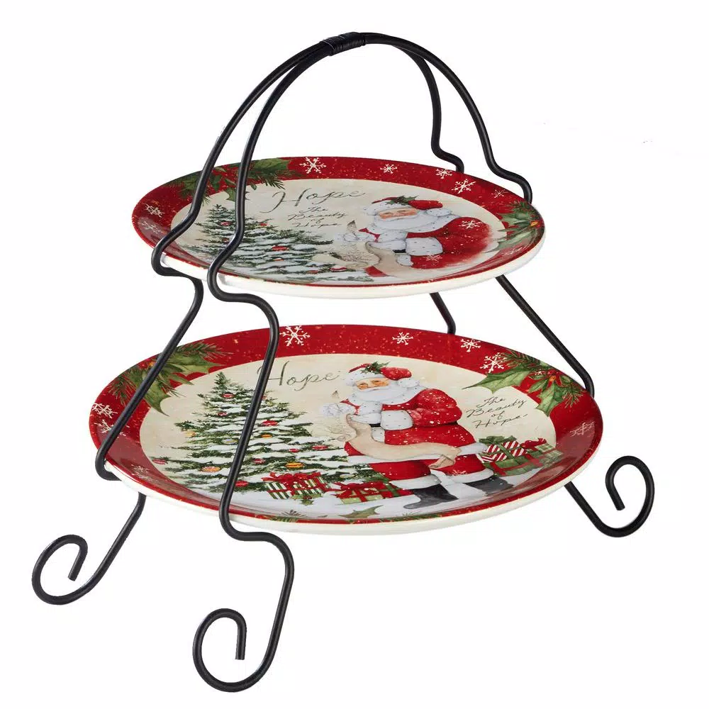 Santa has arrived bringing you special wishes for your holiday table. Joyful scenes of Santa with beautiful Christmas trees designed by Susan Winget decorate this Certified International ceramic dinnerware and serveware, accented with plaid and inspiring sentiments. Complete your holiday table with the matching 3-d Santa cookie jar, S&P set and an ornament covered bowl.