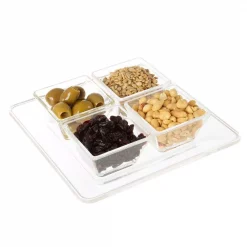 The 3-Piece Chip and Dip Appetizer Serving Bowl Set by Classic Cuisine are a convenient and easy way to serve snacks at your next party. The space-saving design of this 3-piece serve-ware features a large bowl for potato chips, tortilla chips, veggies, salad, or fruit, and two removable side bowls that can attach to the main bowl or be used separately for dips, dressings, salsa, guacamole, hummus, cheese, chocolate or any other condiments. The shatter-resistant and BPA free serving dishes are ideal for both indoors or outdoors, and are a stylish, practical set for your next barbecue, baby shower, or birthday party.
