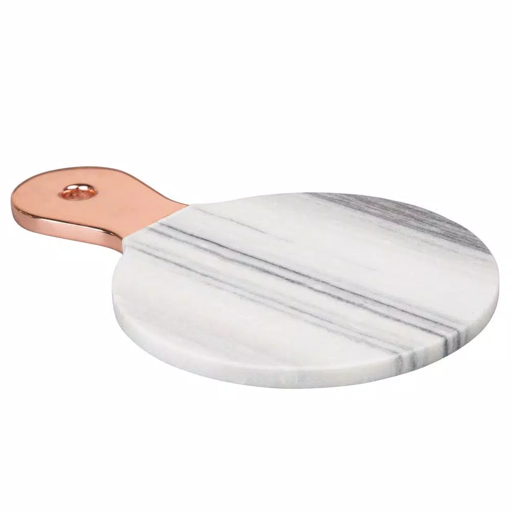 Hand crafted and polished from genuine natural marble, last long time. Dimensions: 12-1/8 in. x 8 in. x ยฝ in. H. Polished marble surface by hand, any color variation is its own uniqueness. Durable, heavy weight natural marble keeps paddle board sturdy and increases stability. Elegant stainless steel copper finished handle design to fit your modern home decor.