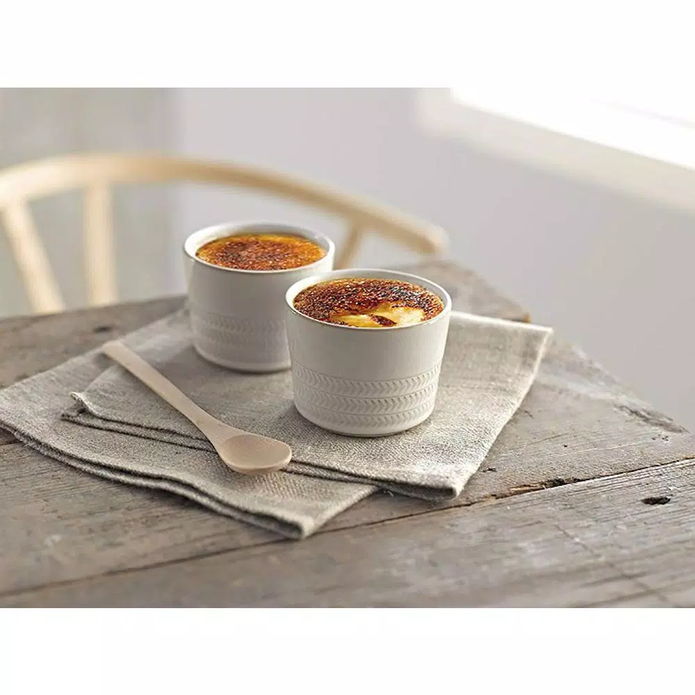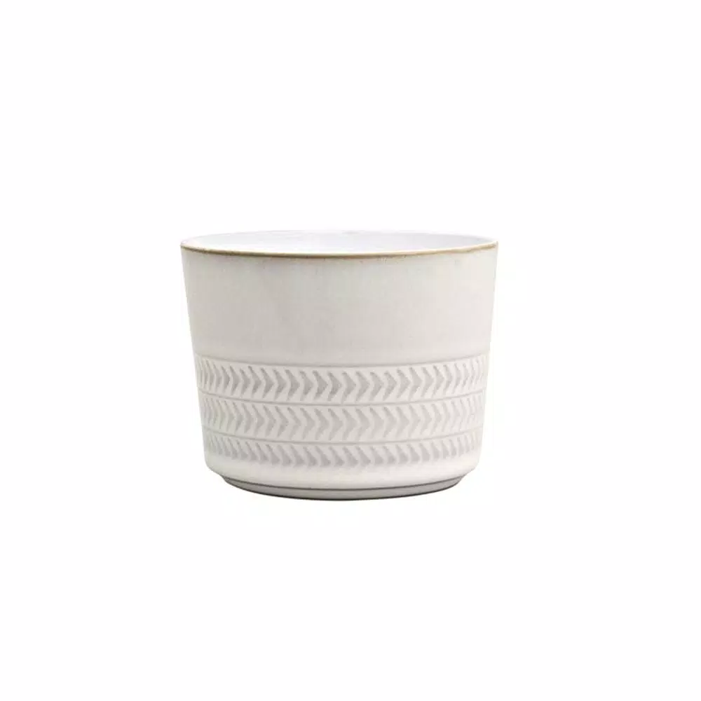 Denby Natural Canvas Textured Sugar Bowl / Ramekin is handcrafted in England by skilled artisans from high quality, locally sourced clay. It exhibits a timeless, neutral tone and glazed design that match seamlessly with the rest of your tableware. This textured bowl is durable and microwave, oven, dishwasher, and freezer safe.