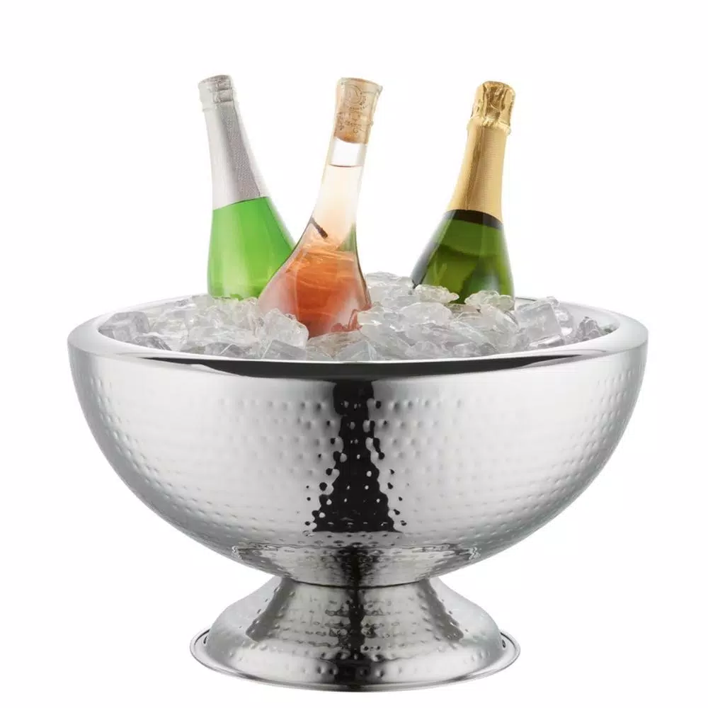 Double Wall 3 Gal. Stainless Steel Punch Bowl. Fine quality Hammered Stainless Steel. Designed to keep liquids cold while exterior is condensation free. Hammered Finish prevents scratching and fingerprints. Perfect for home or commercial use.Can also be used as a beverage chiller or ice tub.