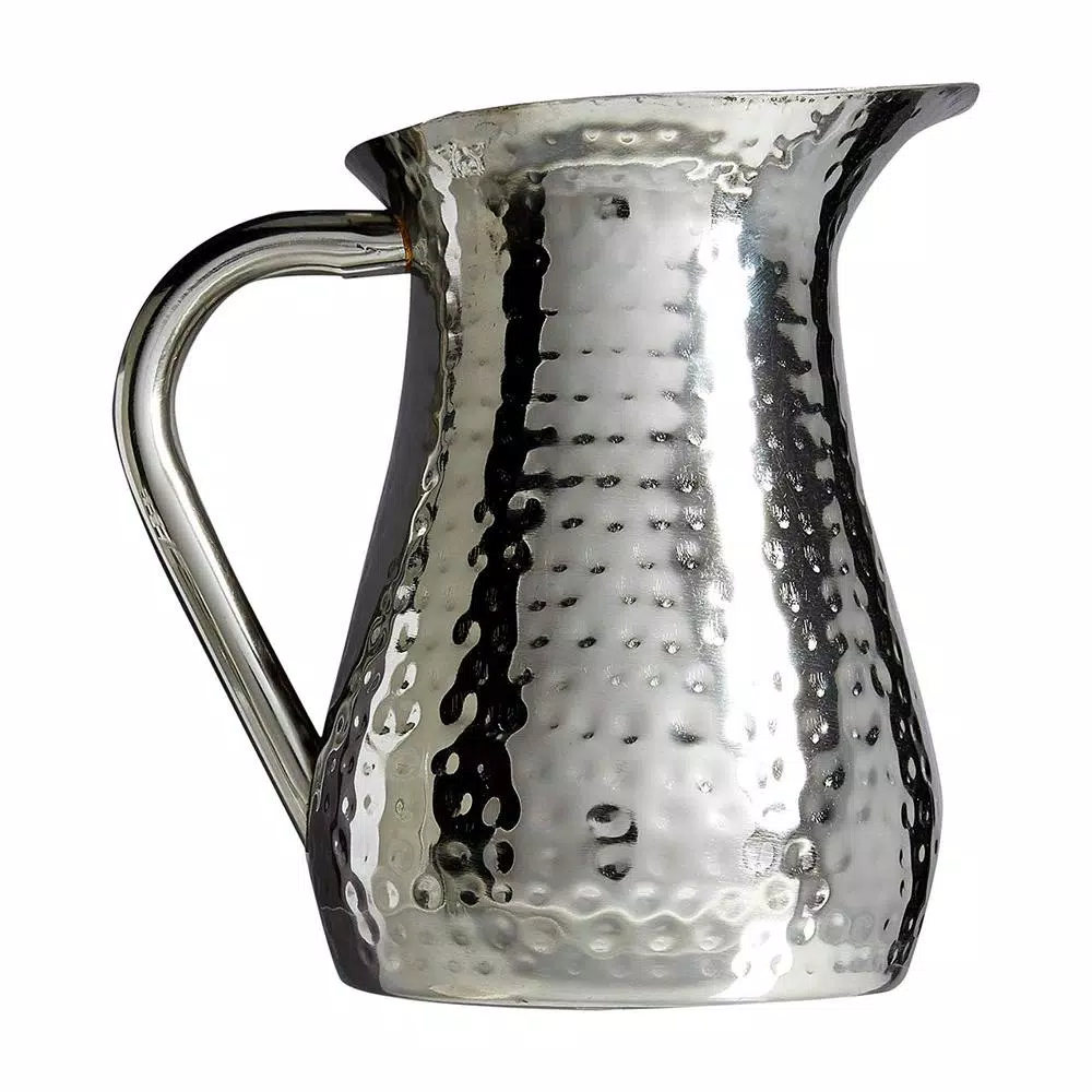 72 oz. Hammered Stainless Steel Pitcher. Hand crafted from high quality stainless steel. Perfect for any beverage with easy cleaning. Design perfect for fine or casual use. Comes with built in Ice guard.