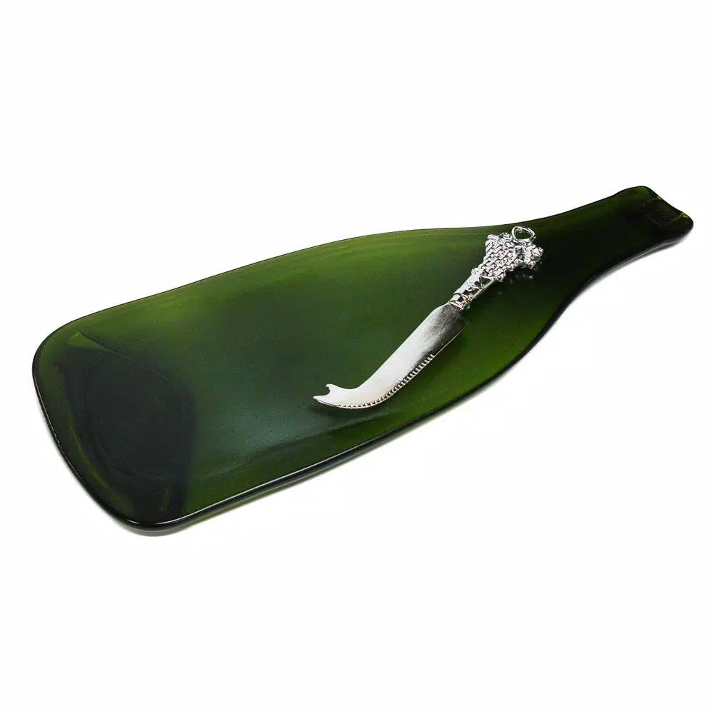 Serve your cheese in style and show off your eco-friendliness with the Wine Bottle Cheese Board by Epicureanist. Made 100% from recycled wine bottles, each cheese board is carefully handmade by utilizing intense heat to melt the bottle followed by a cooling process that produces a smooth and flat surface. This unique piece is a great way to display your cheese, crackers, grapes, appetizers and more. Makes a great hostess or wedding gift.