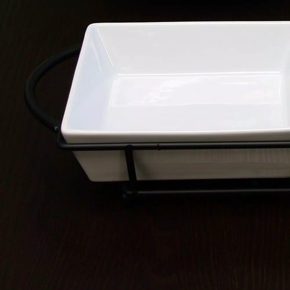 - Porcelain trays are dishwasher safe for convenient cleaning, metal rack hand wash only