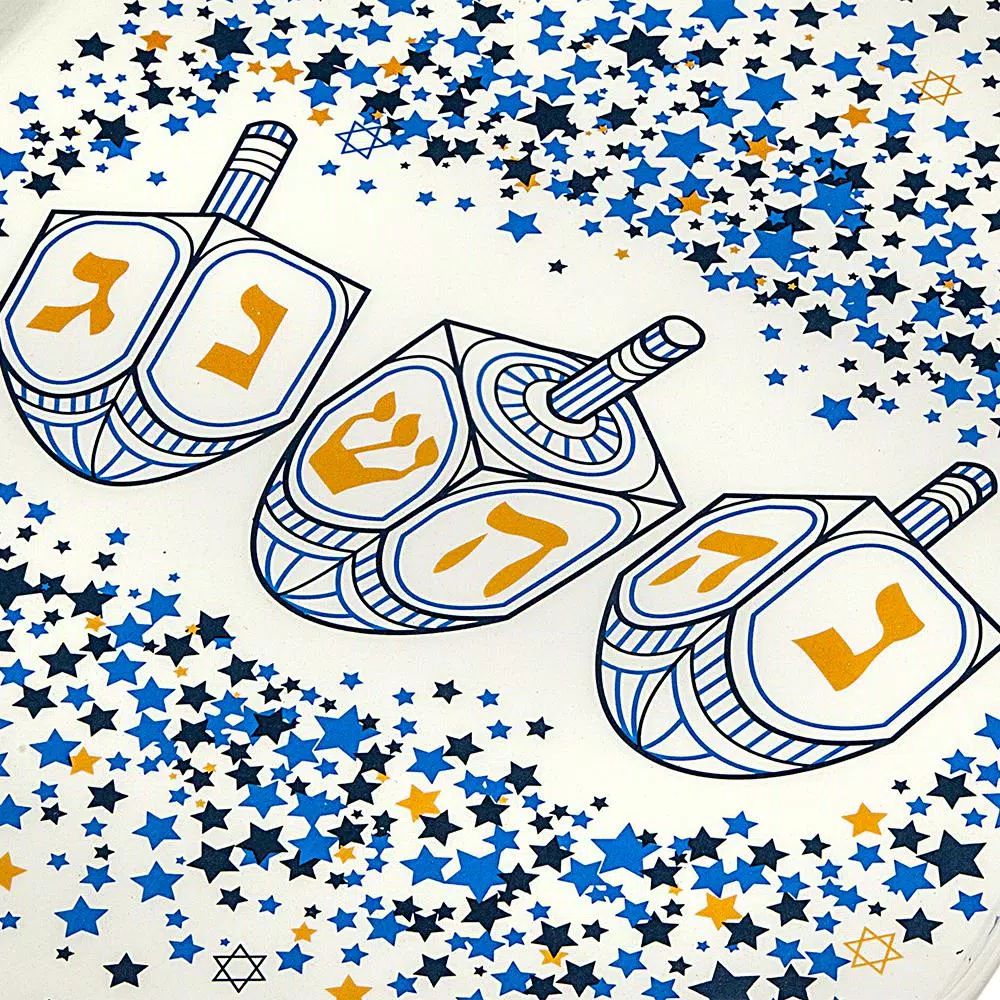 This is the perfect Donut or Latke Platter for your Hanukah party or for the Hanukah table scape. This will definitely add a stunning touch. Item Size: 17.80 in. L x 11.50 in. W x 1.00 in. H. Your guest will be astonished from this piece. Great to use as gift.