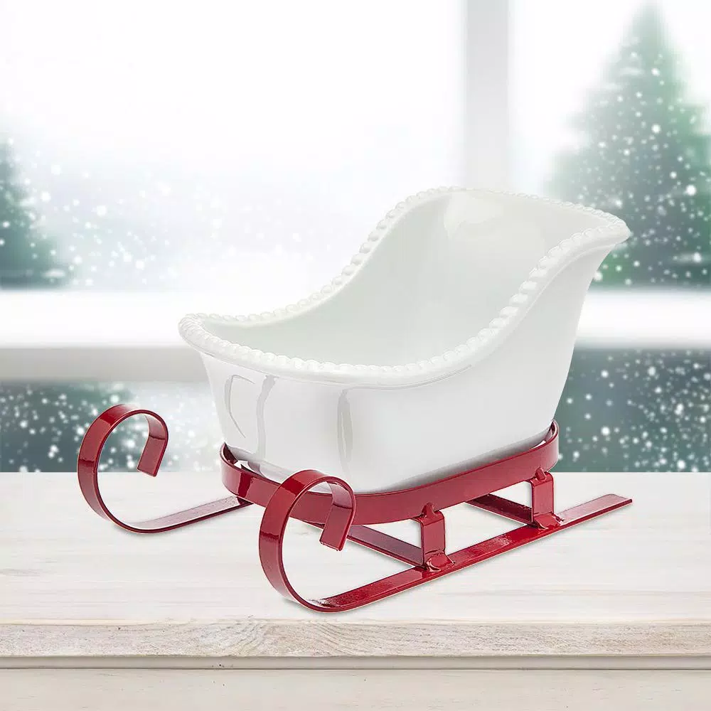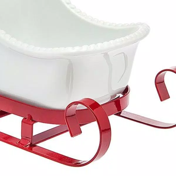 Crafted from sturdy iron, the Santa Sleigh Candy Dish by Godinger is finished in a rustic red hue that lends a dollop of visual charm. Add this dish to your holiday party table for a festive touch that brightens your table setting. The perfect centerpiece and a great holiday gift for a loved one. Fill with your favorite treats and leave out for your guests to enjoy.