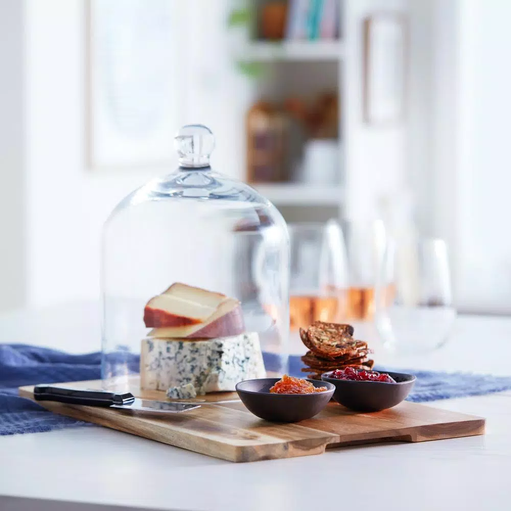 Everyone dreams of what their first real kitchen will be like. Comfortable, light, wonderful โ and always prepared for the unexpected neighbor, friend or family member who happens to stop by.Easier said than done? Of course not. Because with the warm, natural Libbey Acaciawood line, serving a stunning, stylish snack, side or topping is easy as a dream.For instance, the Libbey Acaciawood 4-piece Cheese Board Serving Set with Glass Dome makes a beautiful counterpiece โ empty or full! For an easy all-day breakfast, simply set out some store-bought (we wont tell!) muffins and jams. And when you have a chance to show off something a little fancier? Pick out all your favorite cheeses, fruits and crackers and fill out the most professional cheese plate on the block.Thanks to the beautifully refined texture and elegant nature of your cheese serving set, your wine tasting guests will only think it was hard work. And youll still get to show off your serving skills for an audience. Just grab those convenient handles and whisk it away! After all, when your serveware is this simply stunning, its not just whats inside that counts.