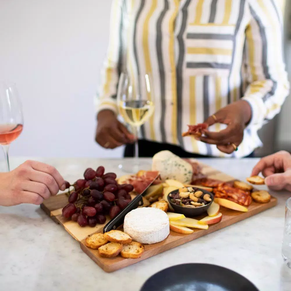 - Engraved handles and durable wood create a subtle, comfortable hold for easy passing, serving and sharing