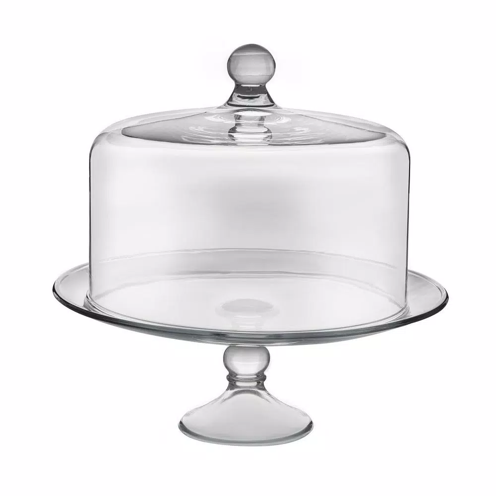 - Includes 1, 13 in. Dia. footed glass cake plate and 1, 10.5 in. Dia. glass cake dome