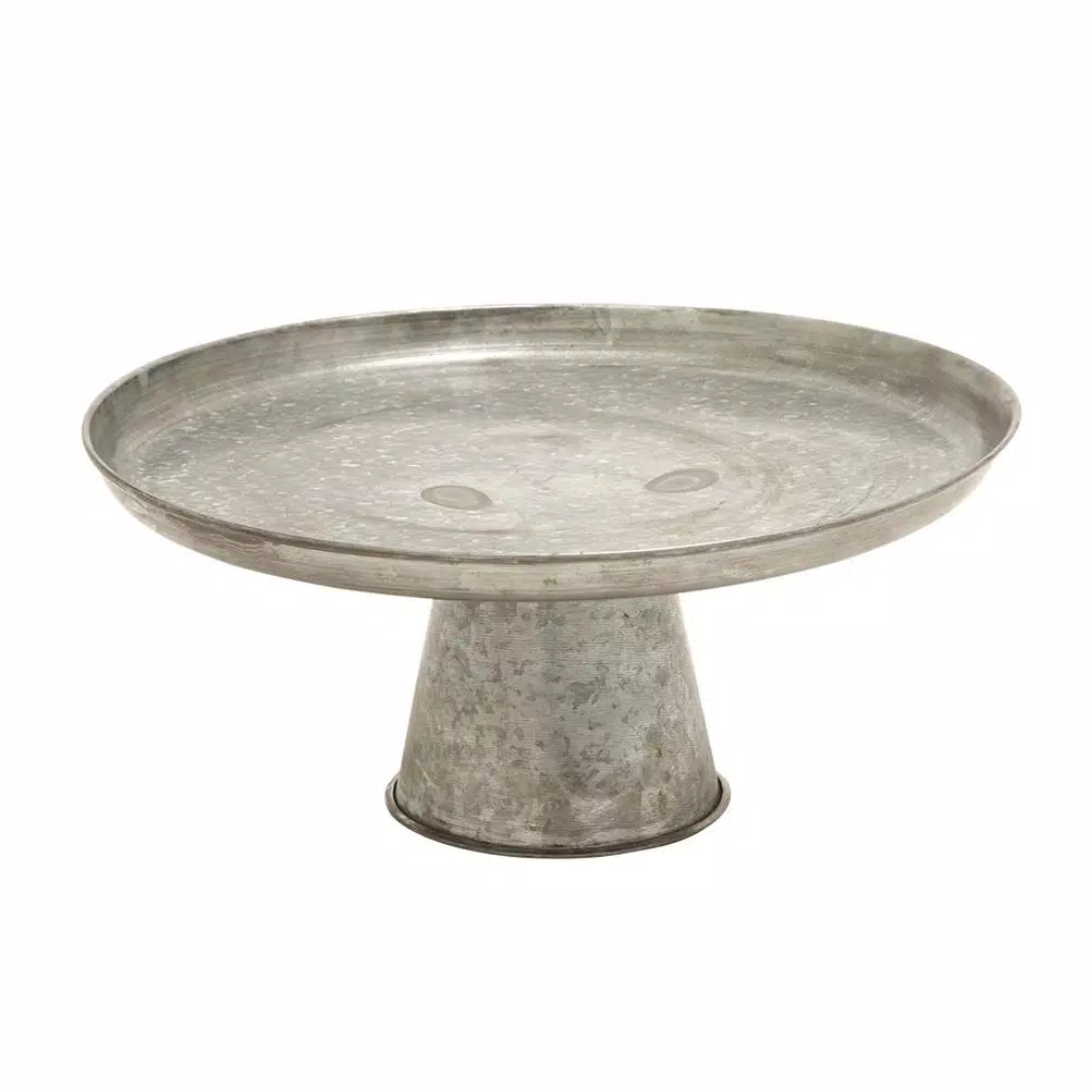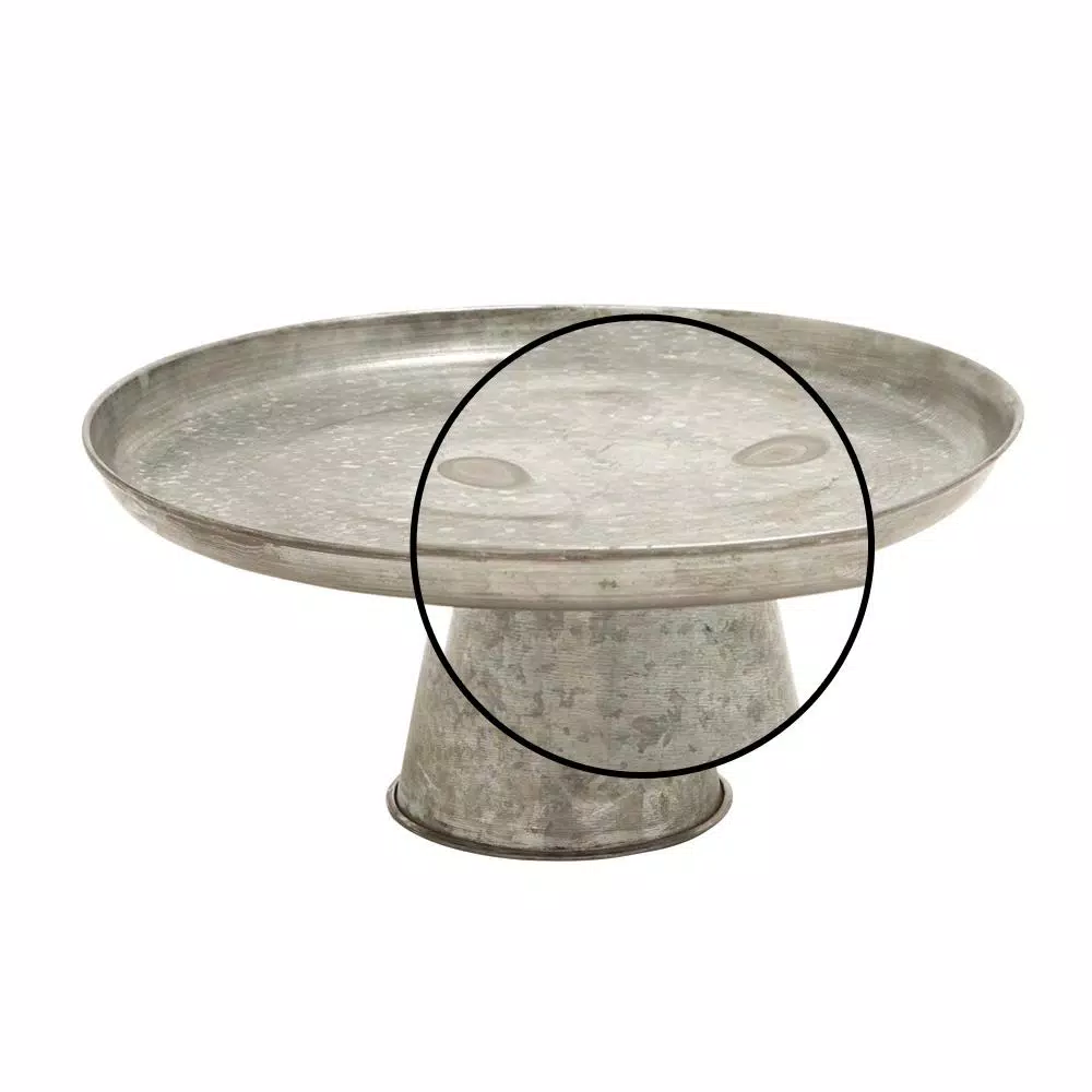 This decorative cupcake stand features a rustic design with its distressed gray finish. It is made of galvanized iron with a classic round tray, raised rim and steady-pedestal stand to ensure a steady hold of your pastries and sweets. This cupcake stand is great for all indoor and outdoor occasions.