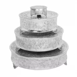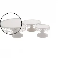 - Set of 3 farmhouse 9, 13, and 15 inch round gray iron pedestal cake stands
