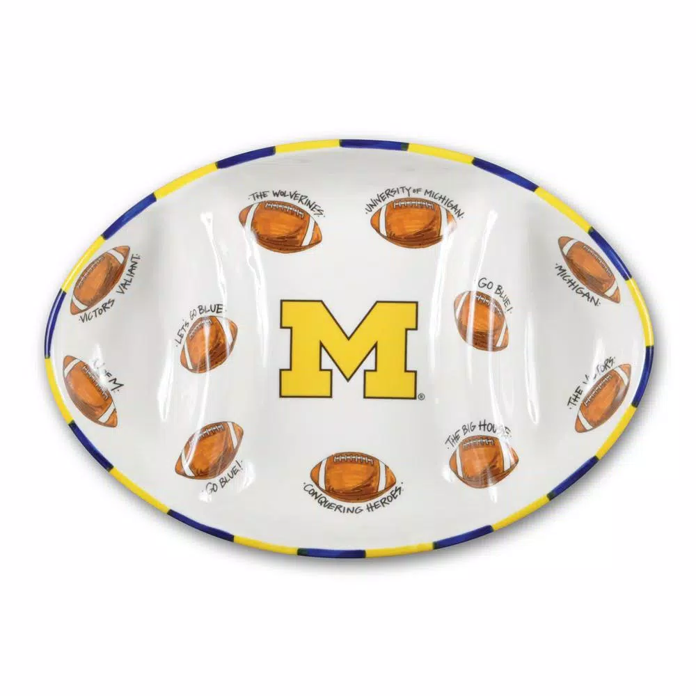 Provide a fantastic addition to your table area with the selection of this Magnolia Lane Michigan Ceramic Football Tailgating Platter. Dishwasher safe.