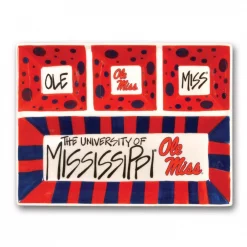 Display the art of presenting food by using this Magnolia Lane Ole Miss Ceramic 4 Section Tailgating Serving Platter. Microwave and dishwasher safe.