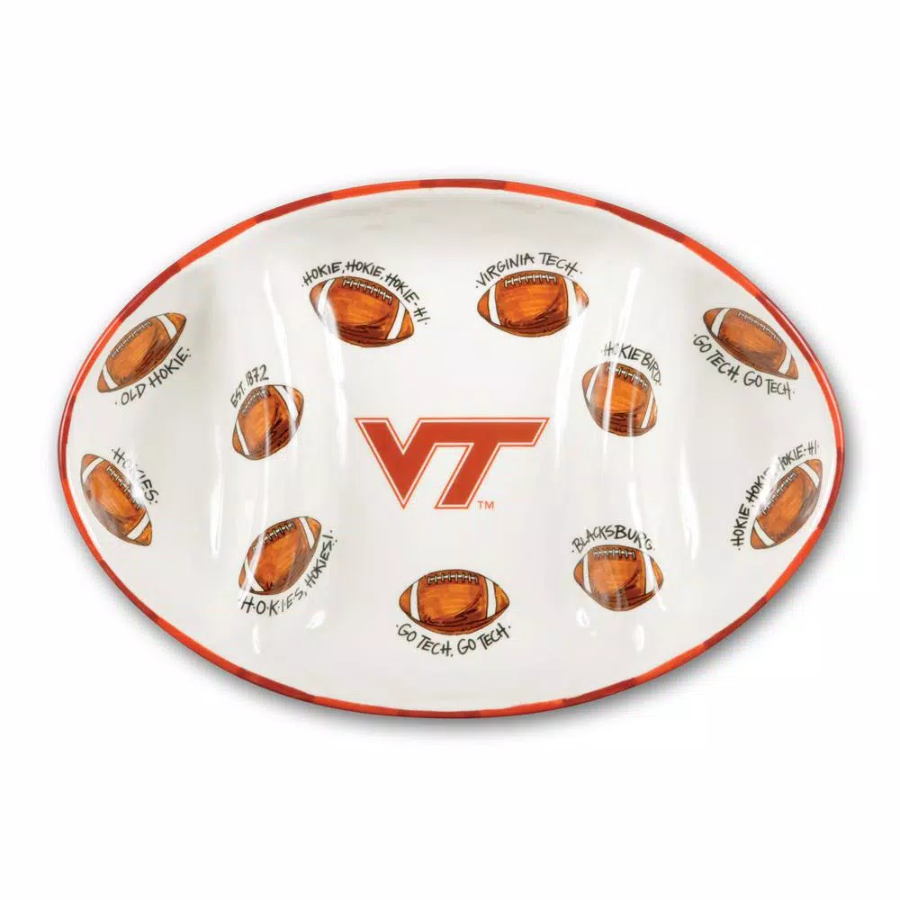 Bring a marvelous look to your table setting with the selection of this Magnolia Lane Virginia Tech Ceramic Football Tailgating Platter. Dishwasher safe.