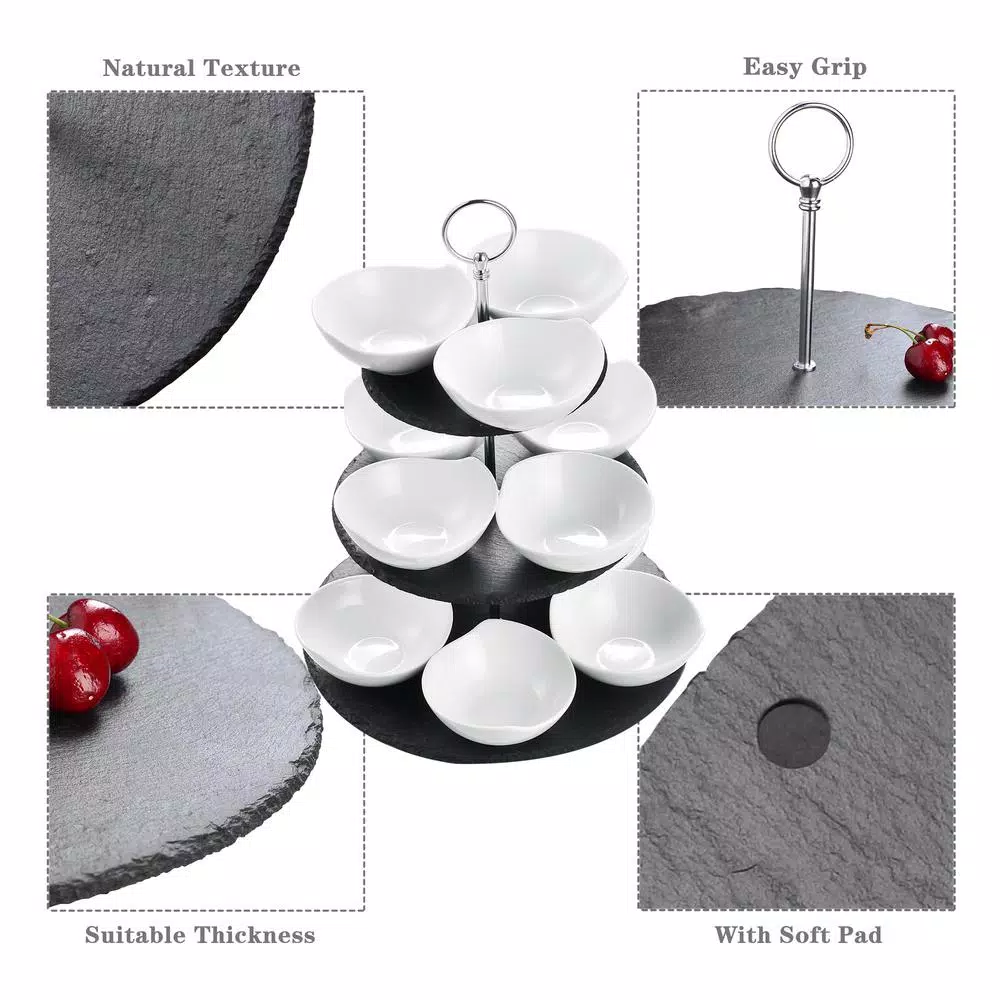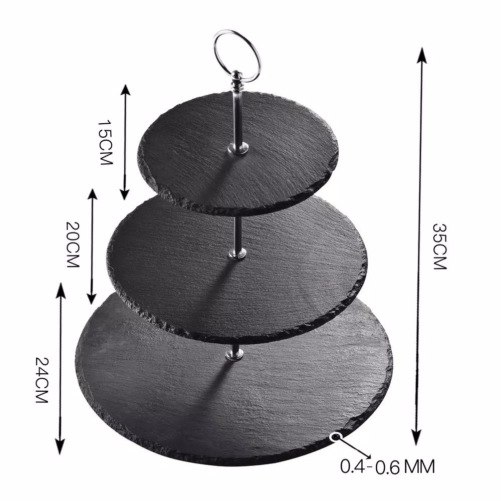 If you’re someone who likes to host all kinds of parties or events with style in your home, having the right dessert display stand can make your work truly perfect and add a lot of charm to your event. Our black slate round cupcake tower stand features with 6 in., 8 in. and 10 in. tower trays, different sizes perfect to contain numerous food per your favor. 3-tiered serving stand in your party won’t need you to move around the table to pass snacks to guests.