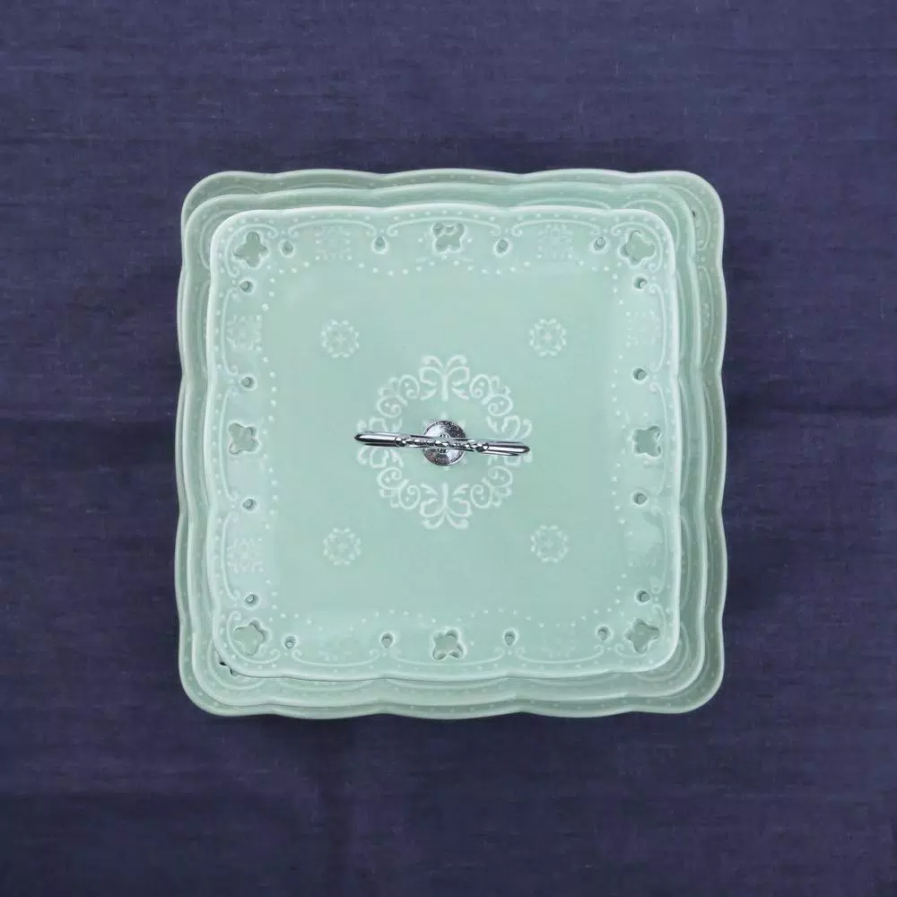 If you’re someone who likes to host all kinds of parties or events with style in your home, having the right dessert display stand can make your work truly perfect and add a lot of charm to your event. Our 14.5 in. tall porcelain green square cupcake tower stand features with 6 in., 8 in. and 10 in. tower trays, different sizes perfect to contain numerous food per your favor. 3-tiered serving stand in your party won’t need you to move around the table to pass snacks to guests.
