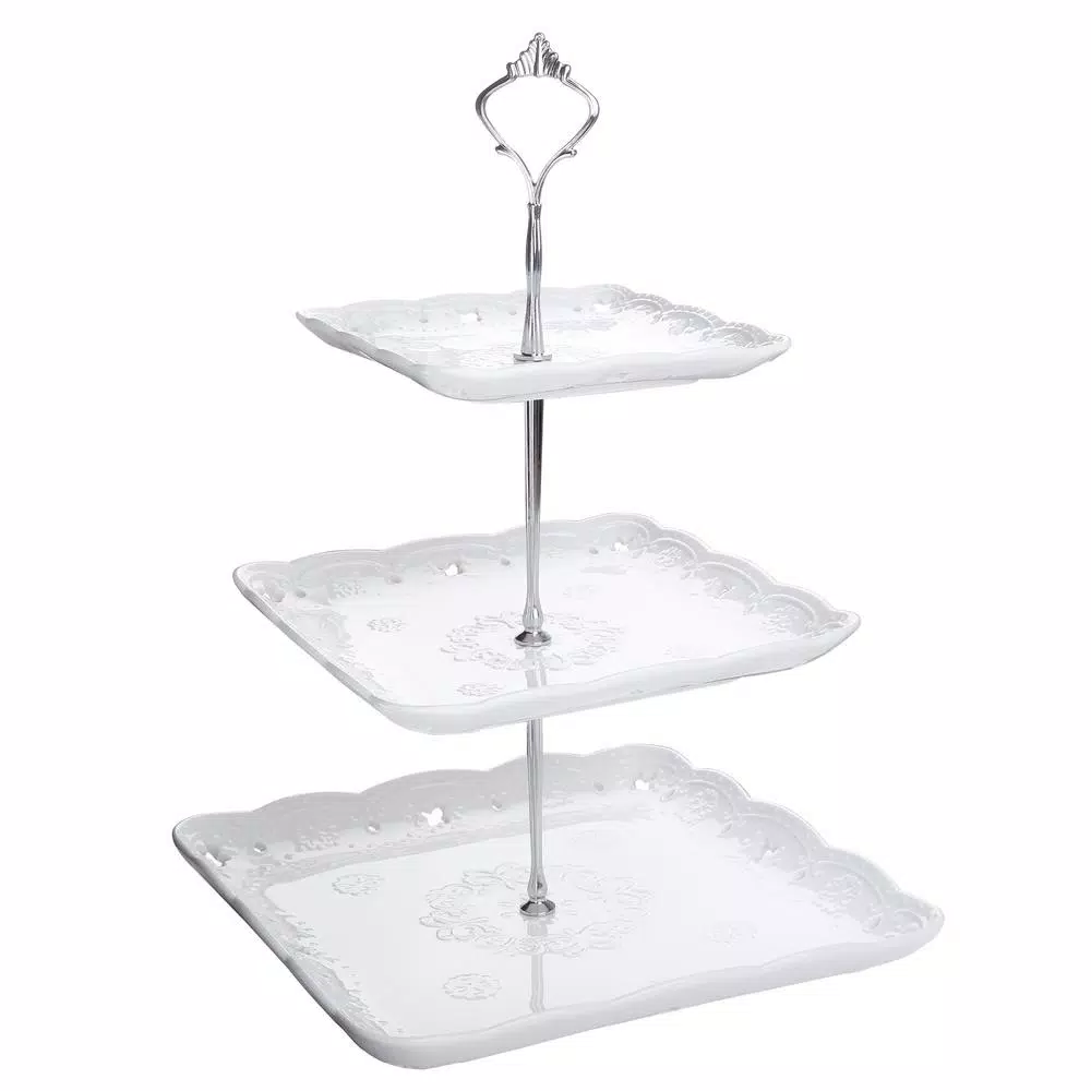 - With elegant great looking, ceramic tiered dessert stand goes anywhere in any setting to impress your guests and simply add a touch of sophistication to any table