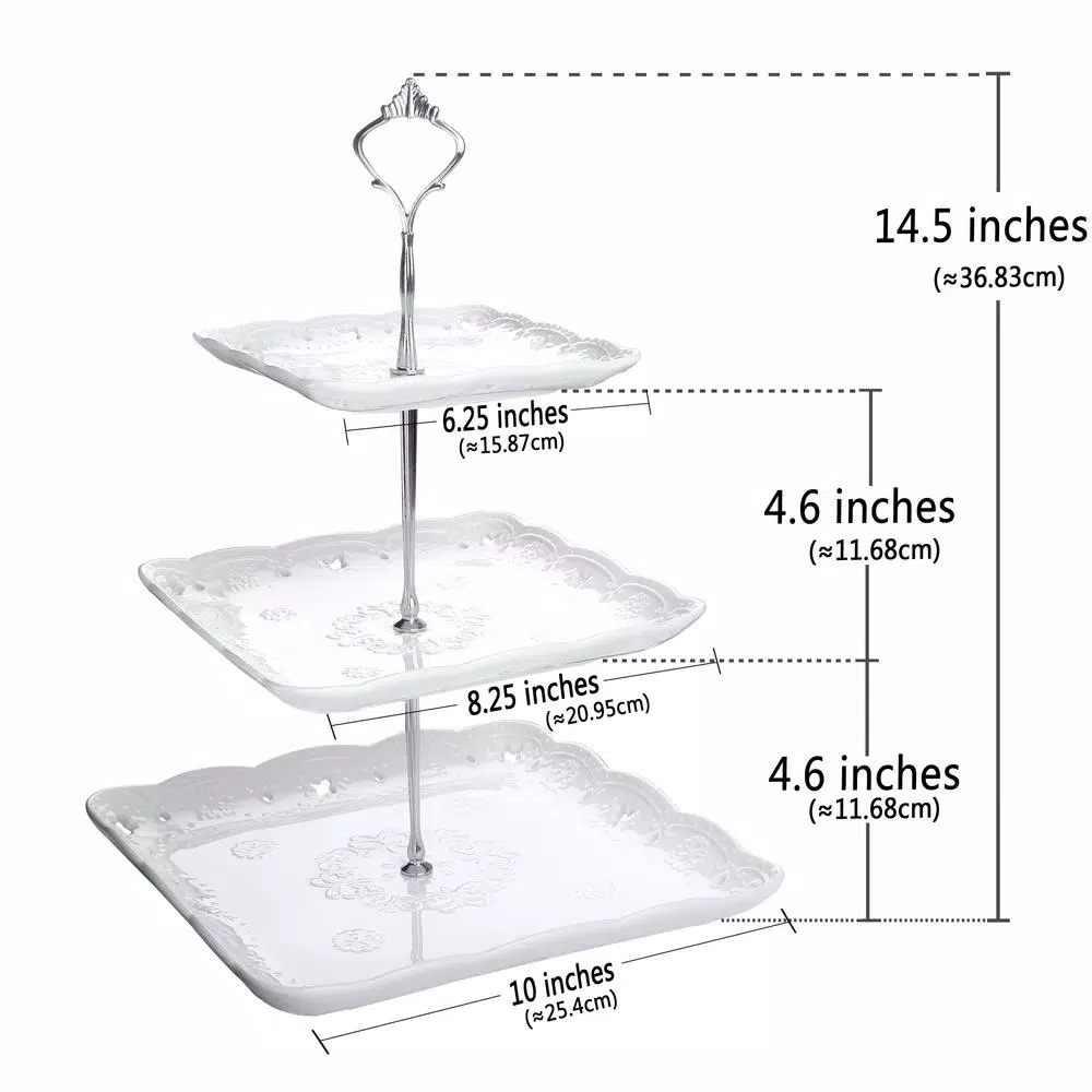 - Tiered serving trays is made of durable porcelain, a type of premium lead-free and non-toxic ceramic, our porcelain cake stand will not cause any chemical reaction with food, ensure your families healthy diet