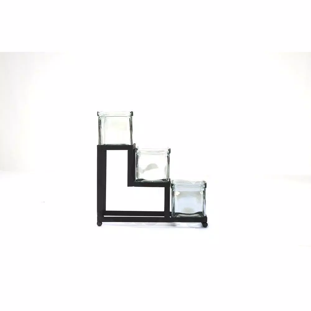 - 3 tiers โ of condiment jar rows, 1 jar in each tier for a total of 3 clear glass jars for organizing all types of condiments, foods, desserts, and more, sturdy metal support ensures your delicious condiments or supplies will not tip over and make a mess