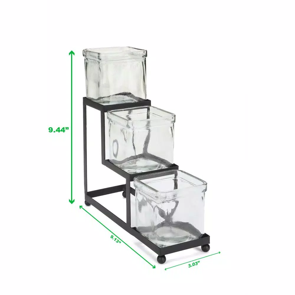- Individual jars โ each single glass jar is 3 in. L x 3 in. W x 3 in. H