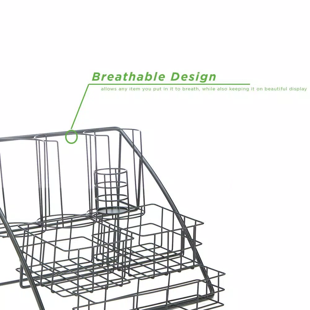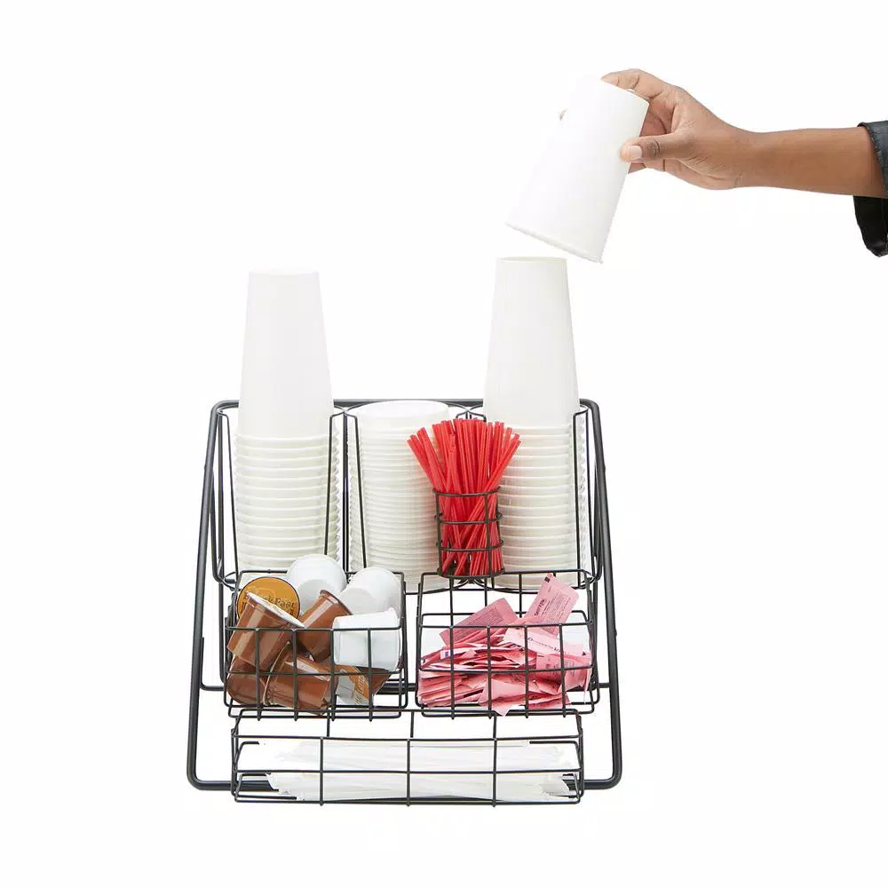 1-piece Black coffee condiment organizer is made from a tough and steel that will stand the test of time. This unit has 8-oversized compartments that is a necessity for any large Breakroom or Lunchroom. Easily organize anything from your cups to cup lids in this 1-unit. With this unit, you will no longer need to scram around for cups, lids, sugar and more. This unit allows you to keep all of your things in 1-area.