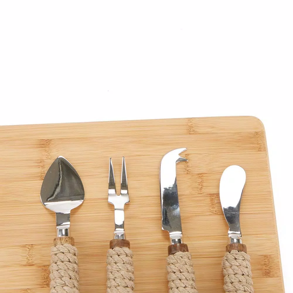 Cut and serve your favorite cheese and snacks at a get-together or a party. This cheese utensil set allows you to cut and serve quickly and easily. It contains 4 different utensils to cut different cheeses and snacks.