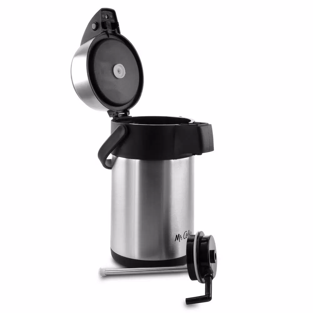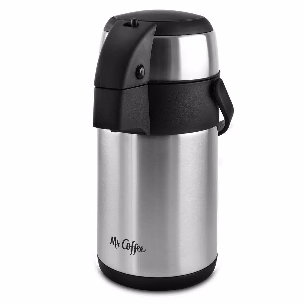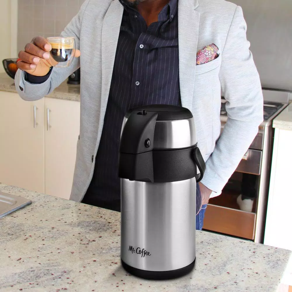 Here’s a great way to serve coffee or any other beverage at your next dinner, party or other event. With The Mr. Coffee 2.3 Qt. Pump Pot, insulated dispensers, you can make the coffee or tea ahead of time, and at the end of the evening it will still be fresh and piping hot. No need for the hostess to ask who wants coffee or tea. and then disappear into the kitchen to get it all ready. Get two or three dispensers and you can give your guests their choice of regular coffee, decaf coffee or tea, and have it all appear instantly.The best solution for the office, work, school or camping.