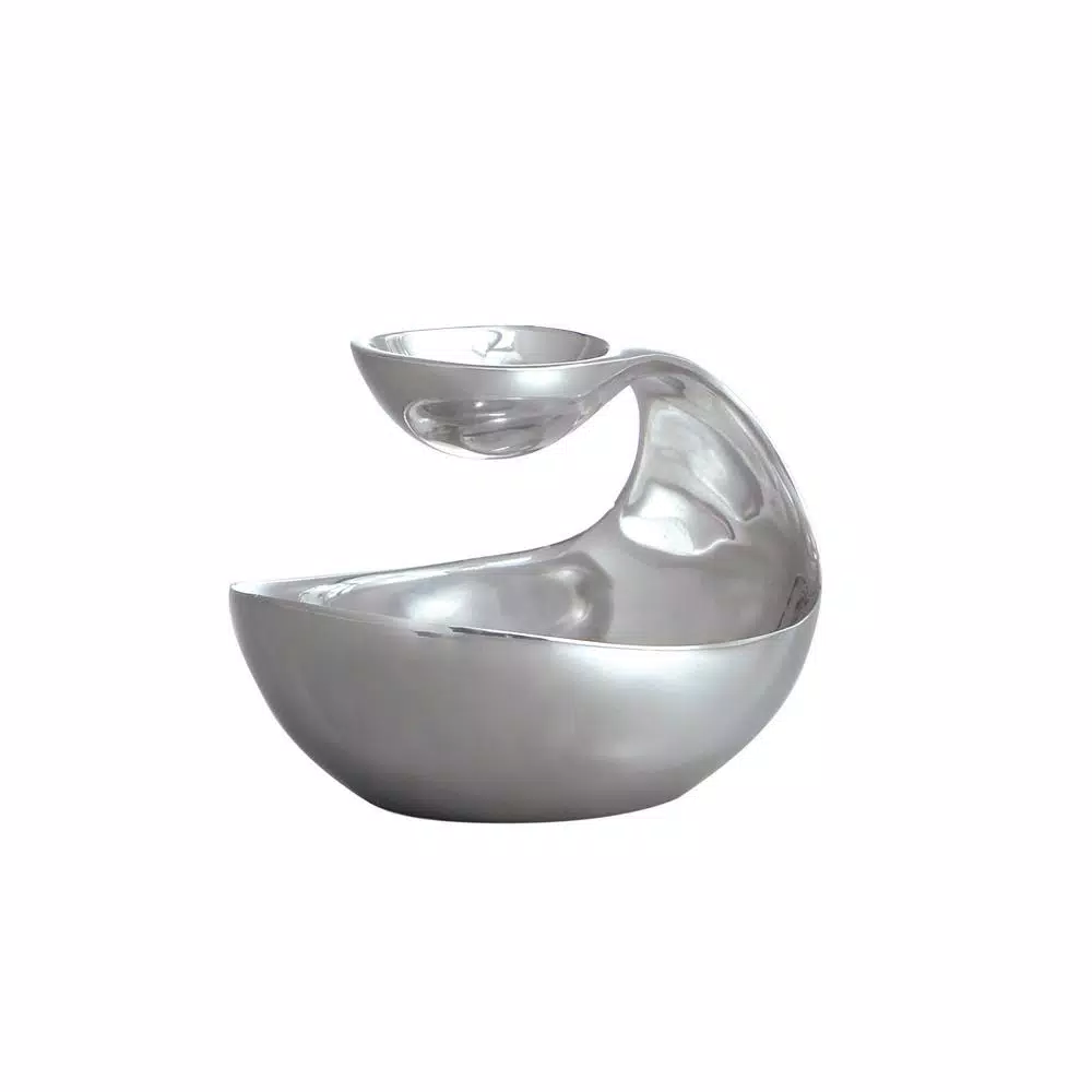 Ideal for intimate gatherings and small surfaces, the exquisite Mini Scoop Server is a graceful blend of form and function that keeps hors dβoeuvre pairings together. Use it for nuts and olives, dips and chips, chocolate medleys, and more. And when youβre not entertaining, fill the bottom with pebbles or dried flowers and place a tea light in the upper vessel-the sculptural lines of the scoop server make it a superb addition to contemporary spaces of all kinds.