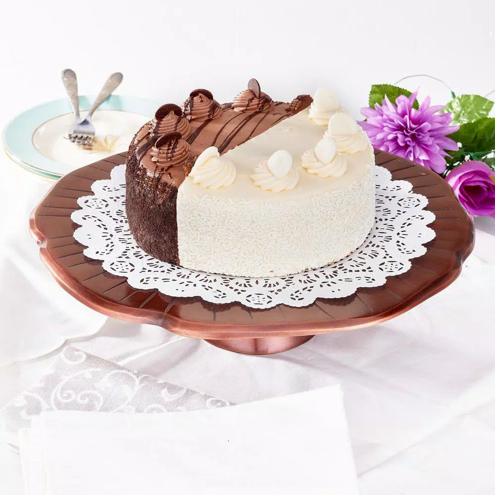 - Light but durable aluminum construction features an antique copper finish, for an elegant look, this cake stand is lacquered for tarnish resistance