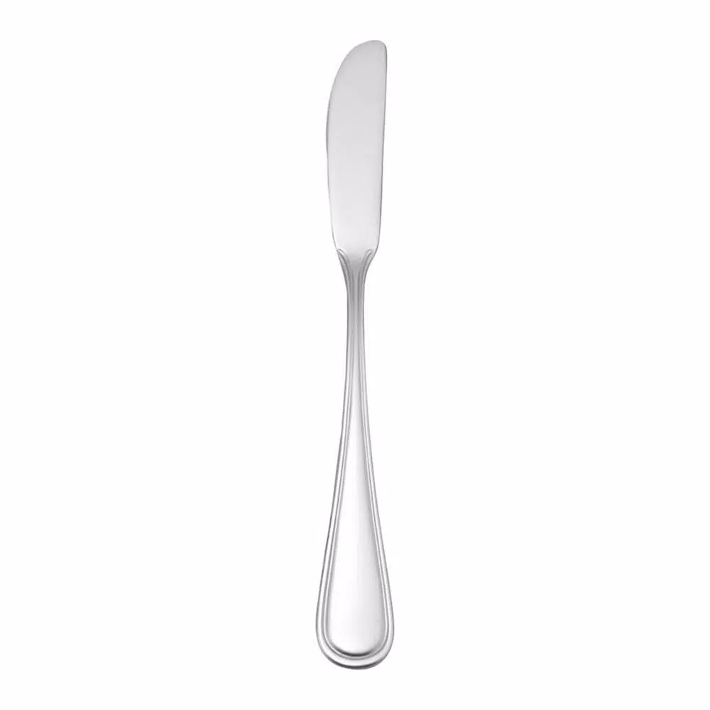 The Oneida T015KSBF Butter Spreader Knife is ideal for spreading butter on bread during breakfast or mealtime. It features tough 18/10 stainless steel material construction with a durable and attractive silver-plated finish. The knife has a teardrop-shaped flat handle with gentle curves for a secure and comfortable hold. Additionally, its sleek and balanced design adds a graceful look to the tabletop and goes well with any flatware.