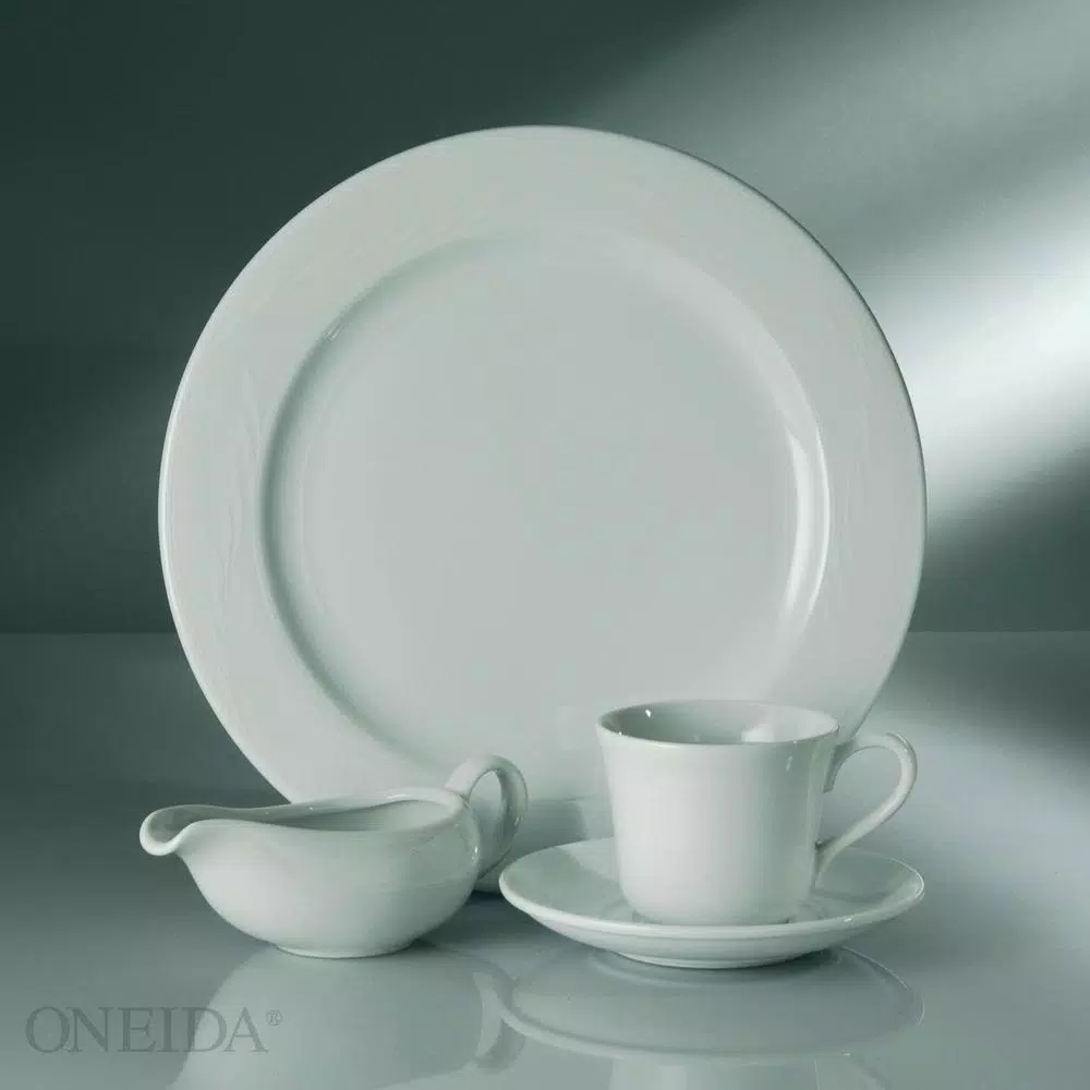 The Oneida Royale line is perfect for a variety of high-end dining rooms, from banquet halls to fine dining restaurants. Made of fine porcelain, this dinnerware is fully vitrified for added durability and stain-resistance. Pair this piece with the rest of the Royale line of dinnerware for a truly dynamic presentation. The bright white color is also great to match with subtle cream or pastel colored table linens to create a cohesive, fine dining experience.