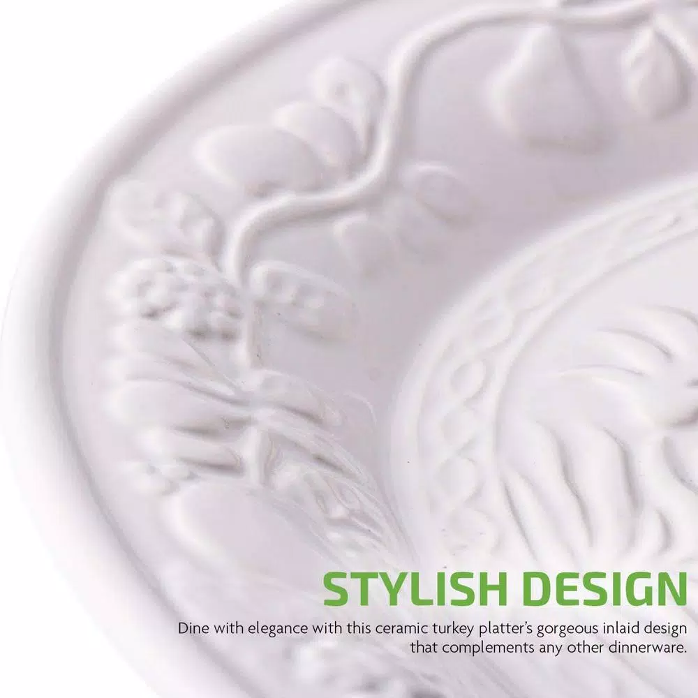 - Stylish design dine with elegance with this ceramic turkey platters gorgeous inlaid design that complements any other dinnerware