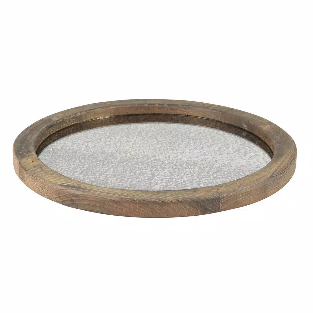 Stonebriarβs Rustic Round Wood and Antique Mirror Serving Tray is the perfect addition to your industrial or farmhouse home decor. Whether you are serving your favorite drinks and finger foods to guests at a party or bringing breakfast in bed to a loved one, Stonebriarβs rustic wood tray is the perfect way to display and serve food and drink. You can also use this decorative tray as a unique centerpiece for a coffee or dining table. Add some decorative orbs for a modern industrial centerpiece or add your favorite pillar candles and turn your tray into a decorative candle holder. This decorative tray features a round natural wood frame with a mirror base that has been lightly distressed giving a vintage feel. Add a Stonebriar natural wood tray to your home decor and instantly add interest to any room or buy this wooden tray as a housewarming or birthday gift for friends and family.