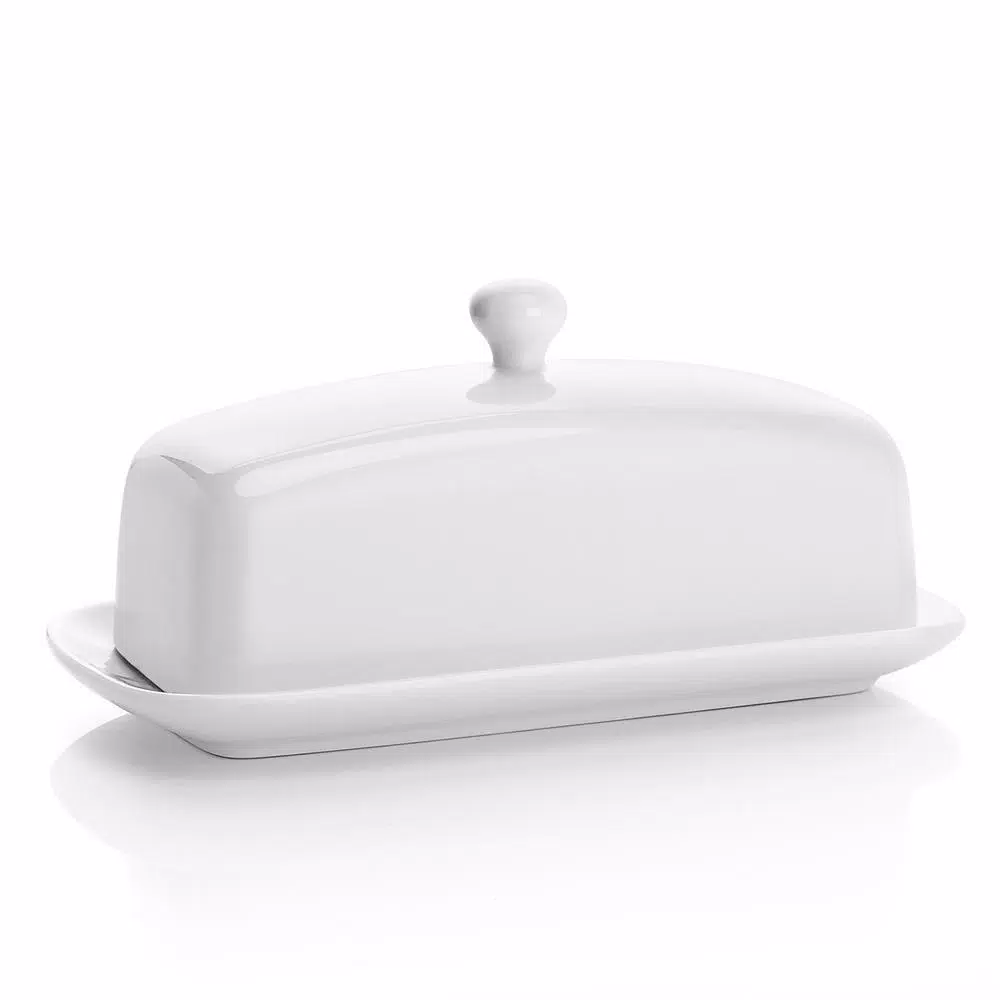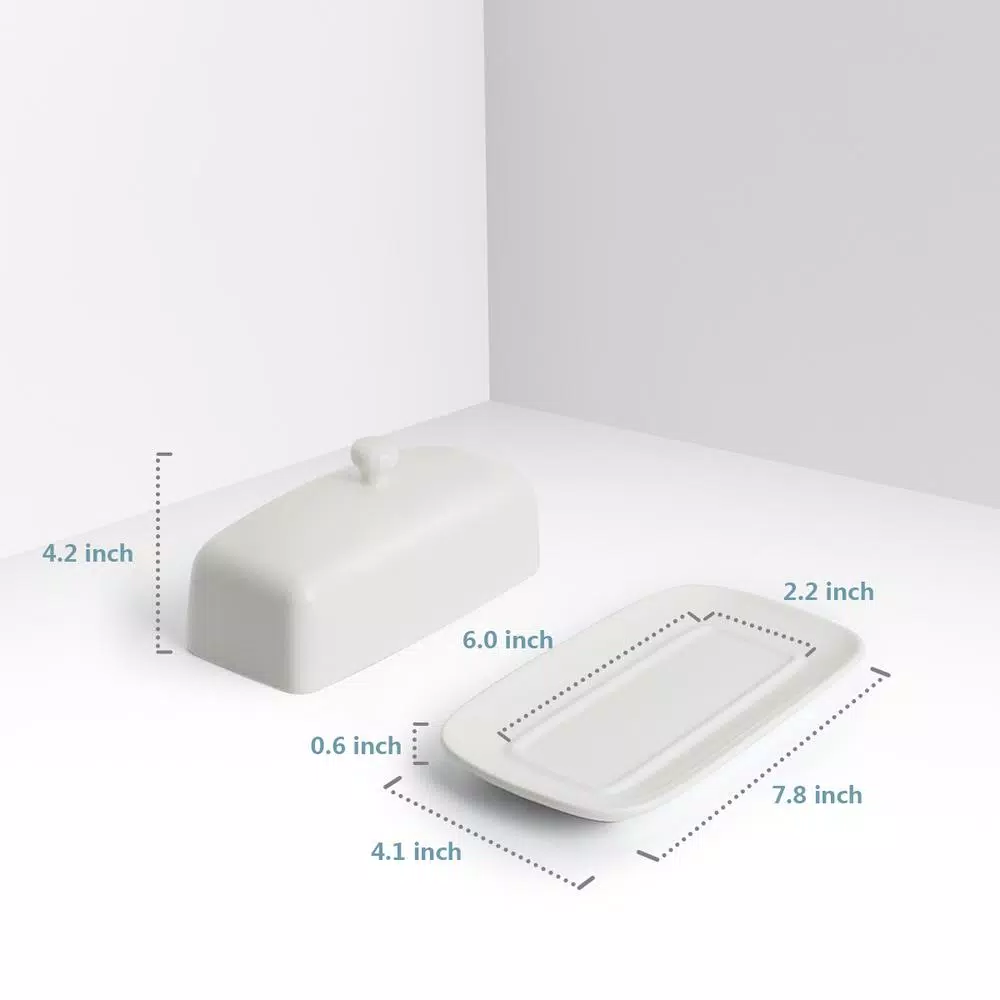 The butter dish with cover can be used for so much more than a butter dish. You also can use the bottom as a little platter to serve small food like cake, cookies, fruits. It is packaged in a well-wrapped box, graceful shape, no blemishes, the style is clean and simple.