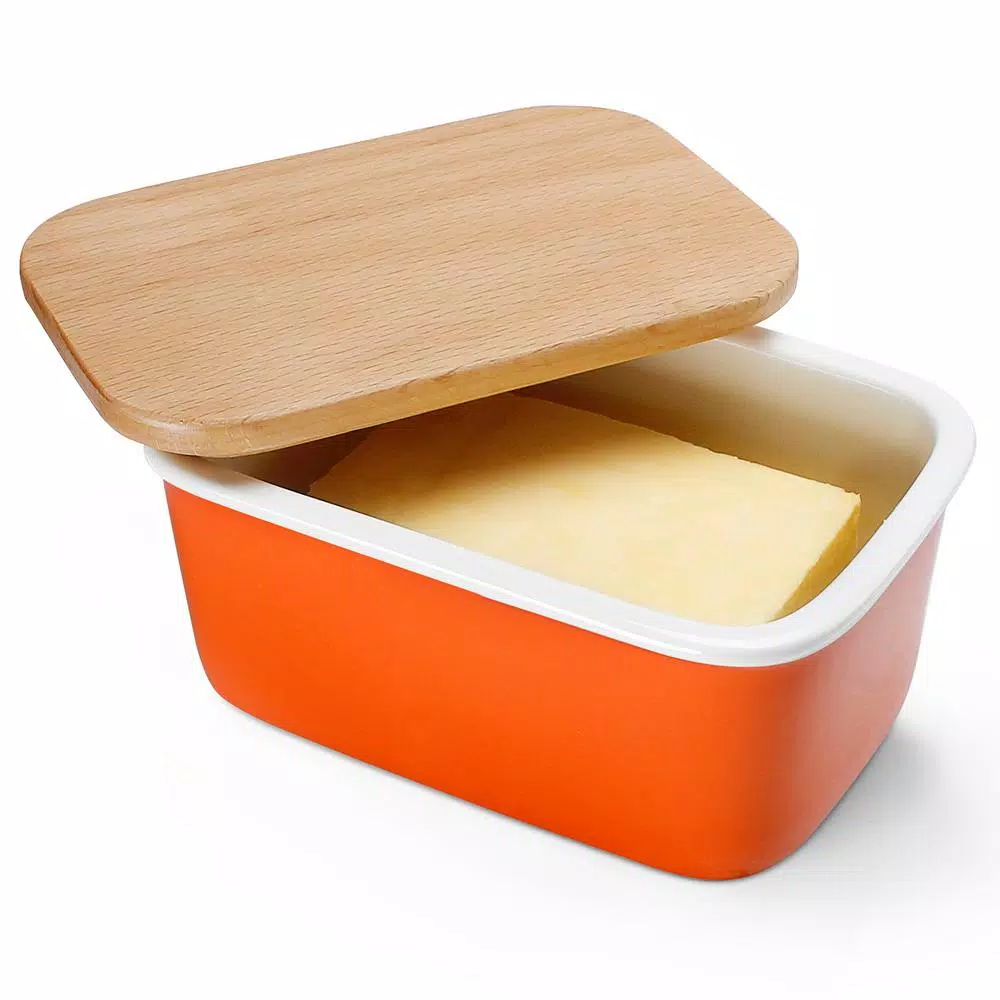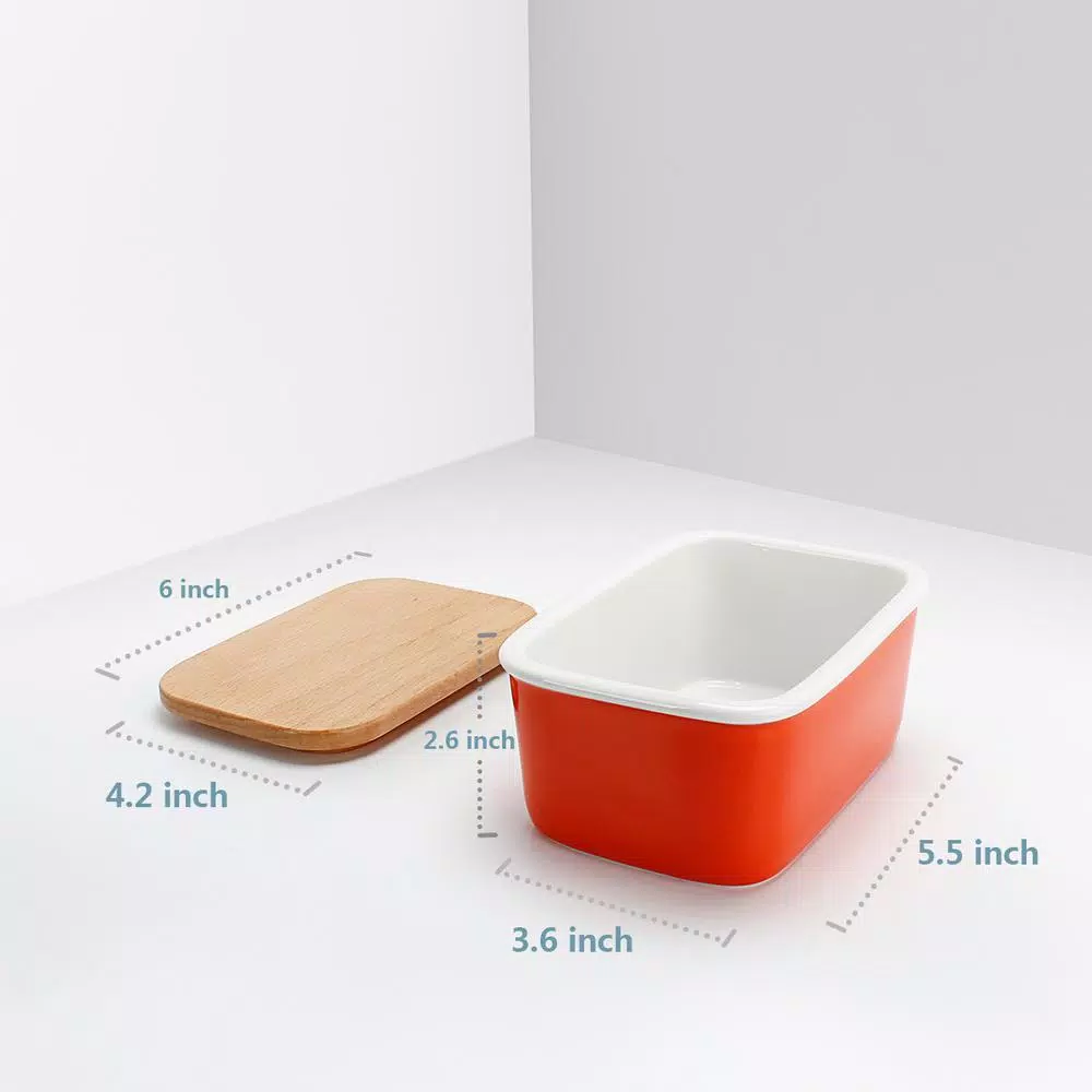 Append a practical and decorative accent to your living space by adding this Sweese Large Butter Dish with Beech Wooden Lid Orange Set of.