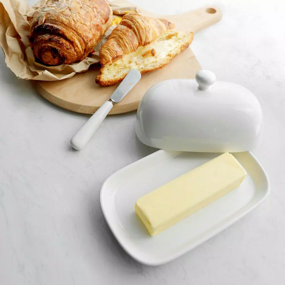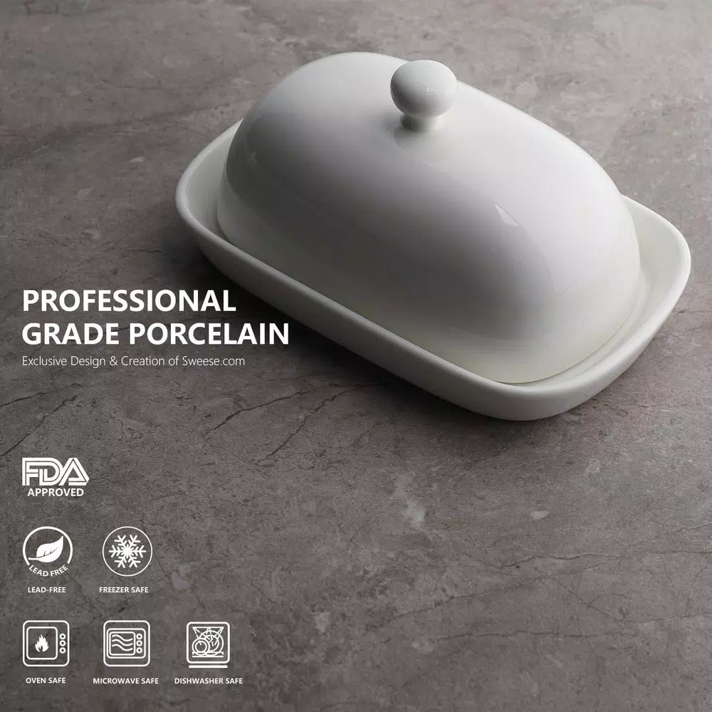 Good quality porcelain β It is more beautiful and safer than the ugly plastic kind of butter dish. The butter dish is made of durable porcelain, chip-resistant and more sturdy than stoneware.