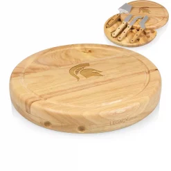The Picnic Time Original Circo Cheese Board is a split-level cutting board made from eco-friendly rubberwood with a swivel-connected box containing four brushed stainless steel cheese tools including: one cheese cleaver (for crumbly cheeses), one cheese planer (for semi-hard to hard cheese slices), one fork-tipped cheese knife, and one hard cheese knife/spreader. This unique and compact cheese board set features a recessed juice groove to catch cheese brine or juice from cut fruit and is sure to be a conversation piece at your next dinner party! Add a touch of fun to your kitchen or dining area.