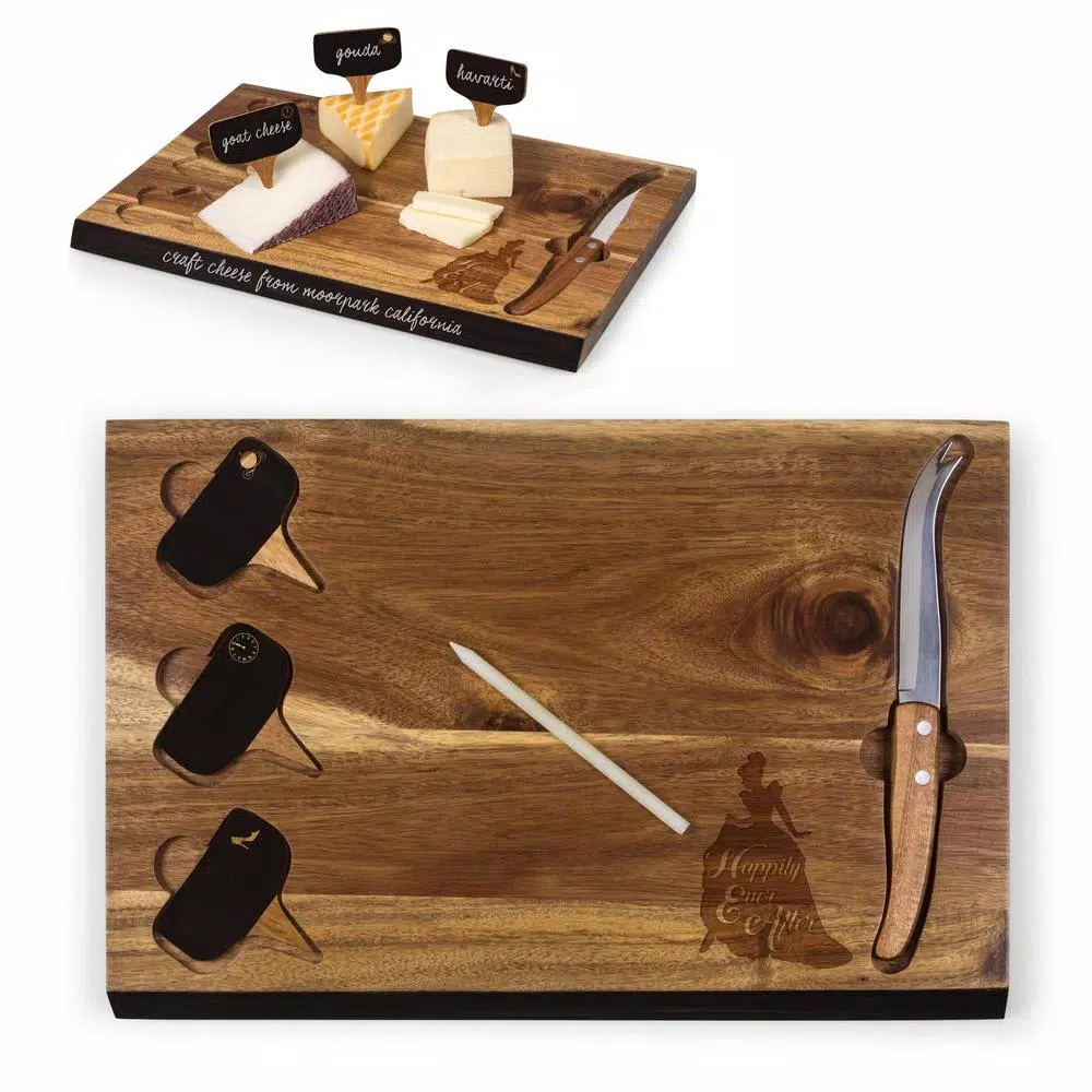 Elegance and simplicity abound in the Delio Acacia Cheese Board, a beautifully-designed acacia cheese platter with carved areas for the full-tang stainless steel fork-tipped cheese knife and three cute little chalkboard cheese markers. Simply use the included soapstone pencil to label your cheeses. And donโt forget to write your special message on the chalkboard area along the front edge of this unique cheese display!